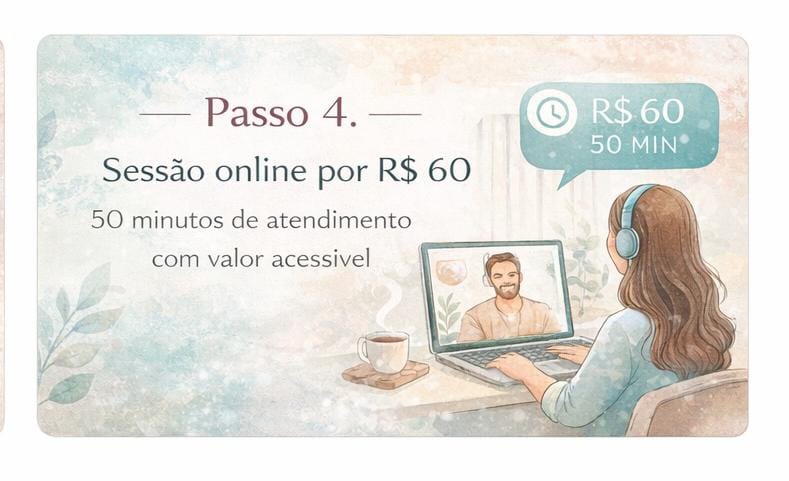 Sessões online de 50 minutos pelo valor social de R$ 70.